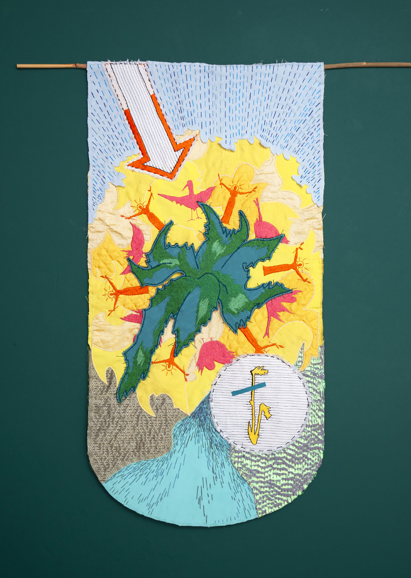 The secrets are in the plants was created parallel to the project 365 PLANTS. The tapestries are based on drawings, thoughts, developed during the research of that project. The equal digital cut, brown, frames contrast with the multi-layered, colorful and very detailed craft by the artist.