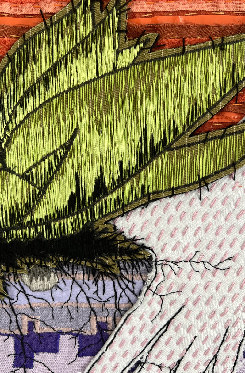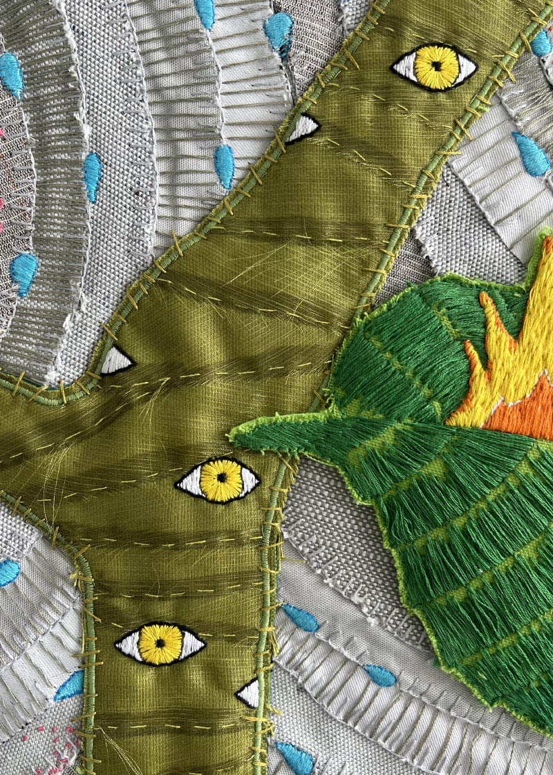 The secrets are in the plants was created parallel to the project 365 PLANTS. The tapestries are based on drawings, thoughts, developed during the research of that project. The equal digital cut, brown, frames contrast with the multi-layered, colorful and very detailed craft by the artist.